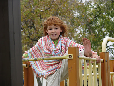 On the way home Dani said, "I still like Laura - she's my friend." Pretty profound statement for a 4 year old. ;) If you click on this photo you'll be able to see Dani's red mark. She was running with the merry-go-round until it got too fast, then her feet flew out from under her and she let go, then Mansel plowed right over her... because he was still merry-go-rounding... Happened pretty fast, Mansel said, "I didn't do it on purpose!" LOL Poor guy... he felt bad. She's a trooper... didn't cry too long. Got right back on. This time letting the big kids do the pushing!